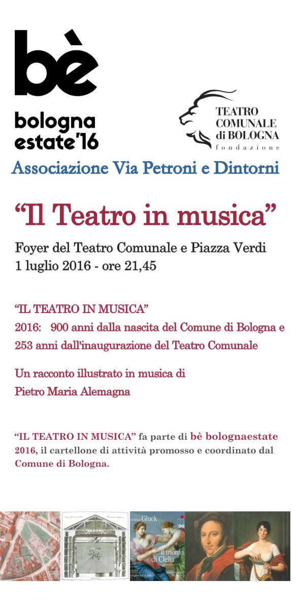 “IL TEATRO IN MUSICA” 2016: 900 anni dalla nascita del Comune di Bologna e 253 anni dall'inaugurazione del Teatro Comunale
